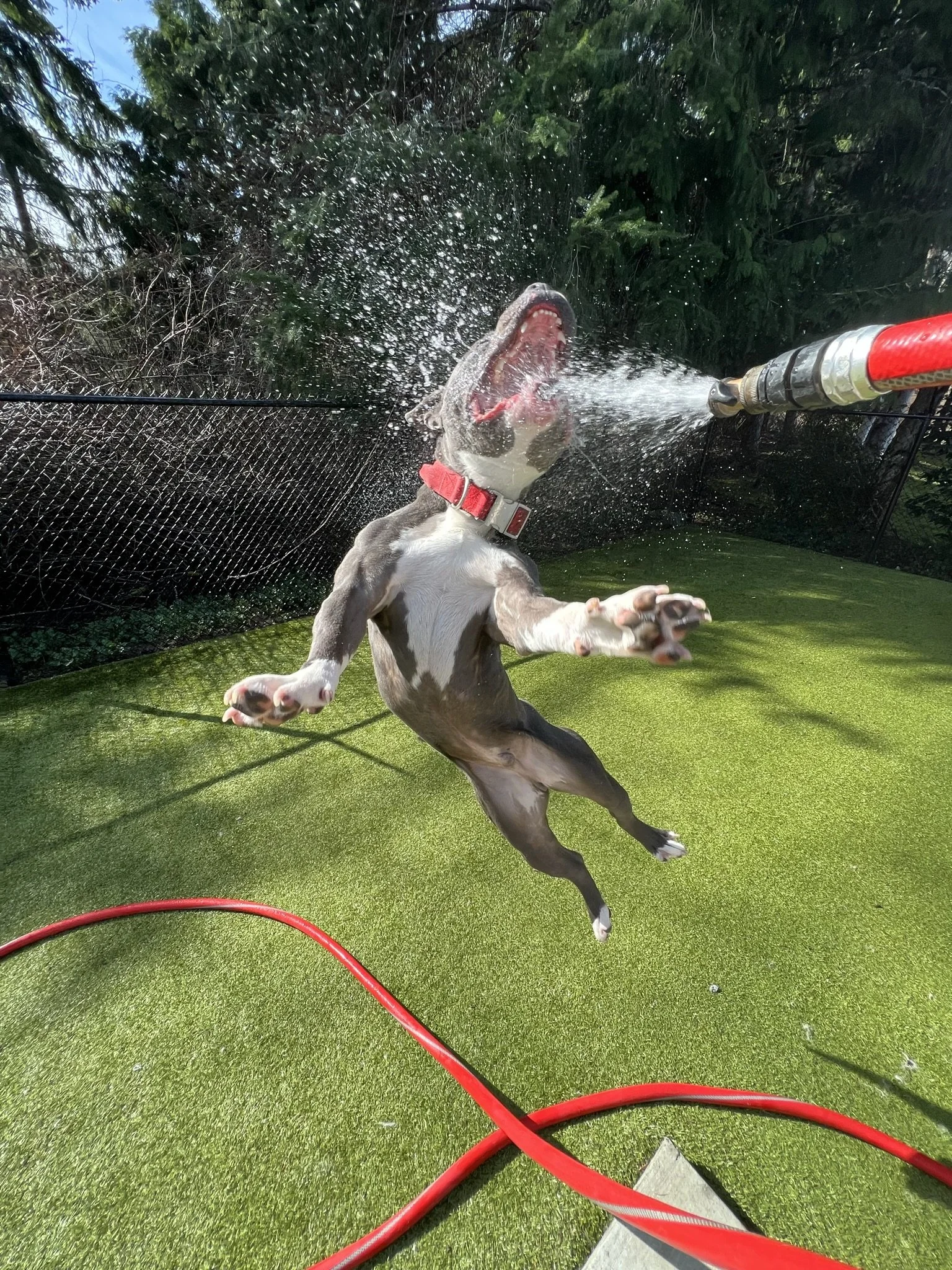 In the summer we always have our pet pools, sun shade and mister spray out in our play yard to keep our pets cool while in daycare.
